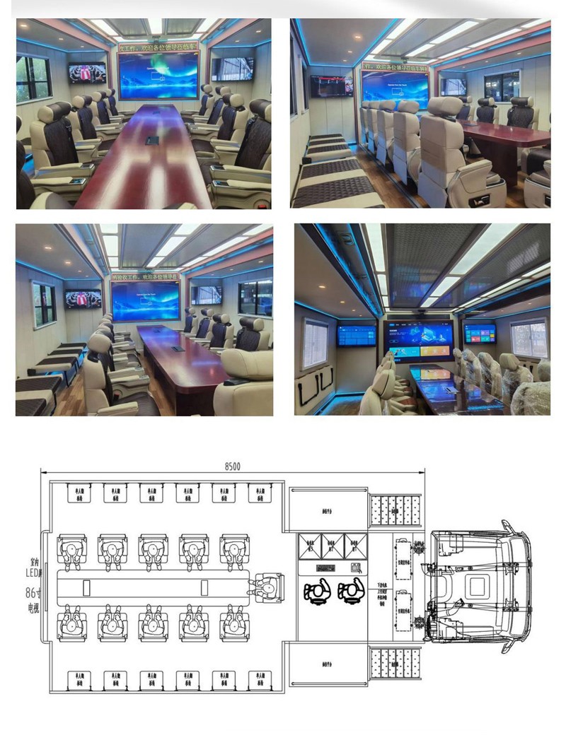 車載衛星通信設備、無線通信系統、車內辦公、供電及配套系統等。